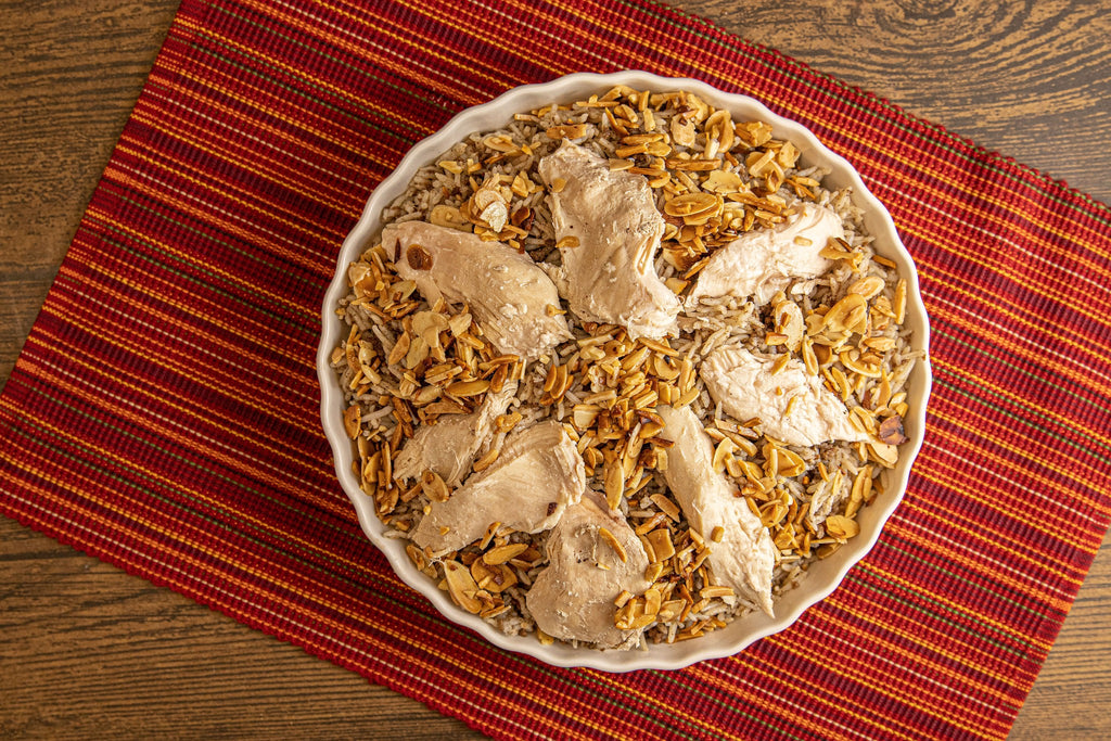 Savor the perfect harmony of tender chicken and fluffy rice in this one-kilogram Middle Eastern specialty. Seasoned with warm, aromatic spices and garnished with crunchy roasted almonds, this dish delivers authentic flavors with every bite. The chicken is expertly prepared to remain juicy and flavorful while the rice absorbs all the delicious spice-infused essence. A wholesome, satisfying meal that brings traditional Levantine cuisine to your table, perfect for family gatherings or weeknight dinners. Simple, delicious, and ready to impress.